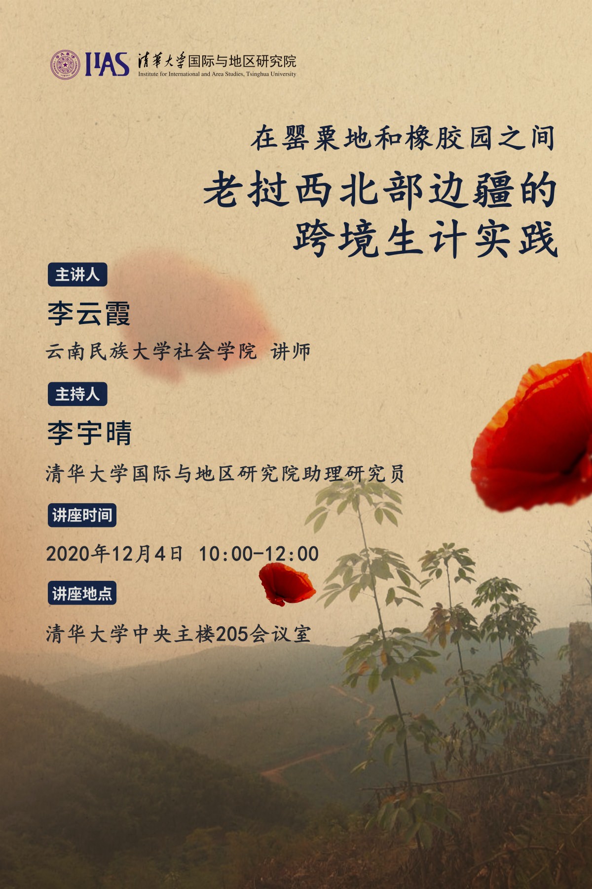 On the morning of December 4th, 2020, a lecture on Southeast Asian studies entitled “In between Poppy and Rubber Fields: Experimenting a Trans-border Livelihood in the Northwestern Frontiers of Laos” was successfully held at Conference Room 205 of the Central Main Building of Tsinghua University, delivered by Dr. Li Yunxia from the Department of Social Work at the School of Sociology, Yunnan Minzu University.