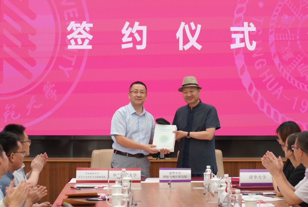 团队访问华东师范大学,于丽娃河畔举行签约仪式。签约仪式由华东师范大学党委组织部部长、人文与社会科学研究院院长朱军文主持。