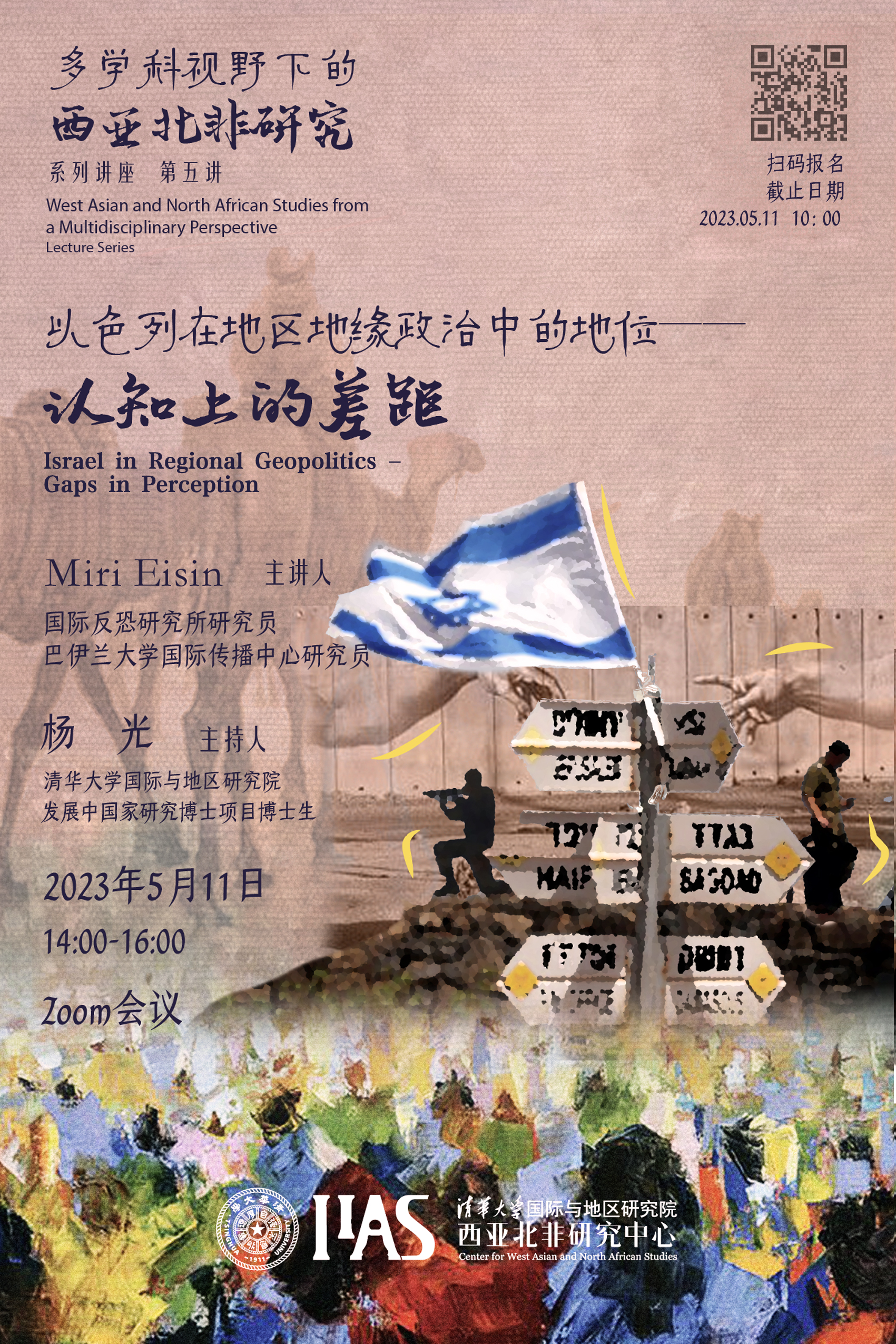 西亚北非研究中心2022-2023学年春季学期“多学科视野下的西亚北非研究”系列讲座第五讲于线上开讲,主题为“以色列在地区地缘政治中的地位——认知上的差距”。本次讲座由国际反恐研究所研究员、巴伊兰大学国际传播中心研究员Miri Eisin上校(退役)主讲。草榴社区