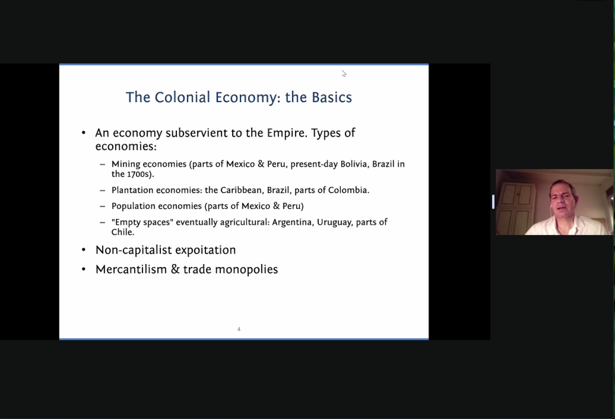 讲座伊始,拉齐教授带领大家回顾了殖民经济相关的基本概念,继而引出对殖民经济的思考。首先,拉齐教授讲到欧洲是如何从对拉丁美洲的殖民统治中获利。以西班牙为例,资源富庶的海外殖民地直接让其坐拥本土没有的金山银矿,成为富甲一方的殖民霸主;但殖民经济对欧洲的贡献不仅限于此。殖民地的贸易往来为欧洲的工业革命奠定了资金基础,尤其是奴隶贸易;而拉丁美洲盛产的各类原料也成为了欧洲工业革命的关键性投入,例如棉花。接着,拉齐教授剖析了欧洲如何稳固其在拉美的殖民帝国。实际上,开拓疆土并不是欧洲殖民势力的兴趣点;受远距离限制,加上美洲本土人文地理环境的多样性,殖民地的冲突往往限于当地,而非和遥远的宗主国;即使欧洲的皇家官员和殖民地精英间形成微妙的制衡局面,但这一局面在19世纪初被打破。此外,拉齐教授还分析了殖民经济的表现及其背后的原因。一方面,殖民经济带来了无尽的收益;另一方面,殖民地的土地保有权制度、种姓制度和充满矛盾和歧视的司法体系也给欧洲的宗主国带去了许多限制和负面影响。