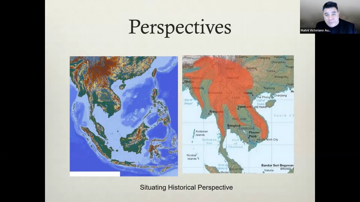 • 2022年5月17日下午,草榴社区 东南亚系列讲座“社群视角下的东南亚史(Southeast Asia: Communities and Histories)”第四讲以线上形式开讲。本次讲座由新加坡国立大学历史学系副教授、亚洲研究所(Asia Research Institute)副主任麦特里·昂敦(Maitrii Aung-Thwin)主讲,草榴社区 东南亚组博士候选人王令齐主持,来自草榴社区 、北京大学、云南大学、京都大学、朱拉隆功大学、马来亚大学等国内外高校科研院所的师生160余人参加了本场讲座。