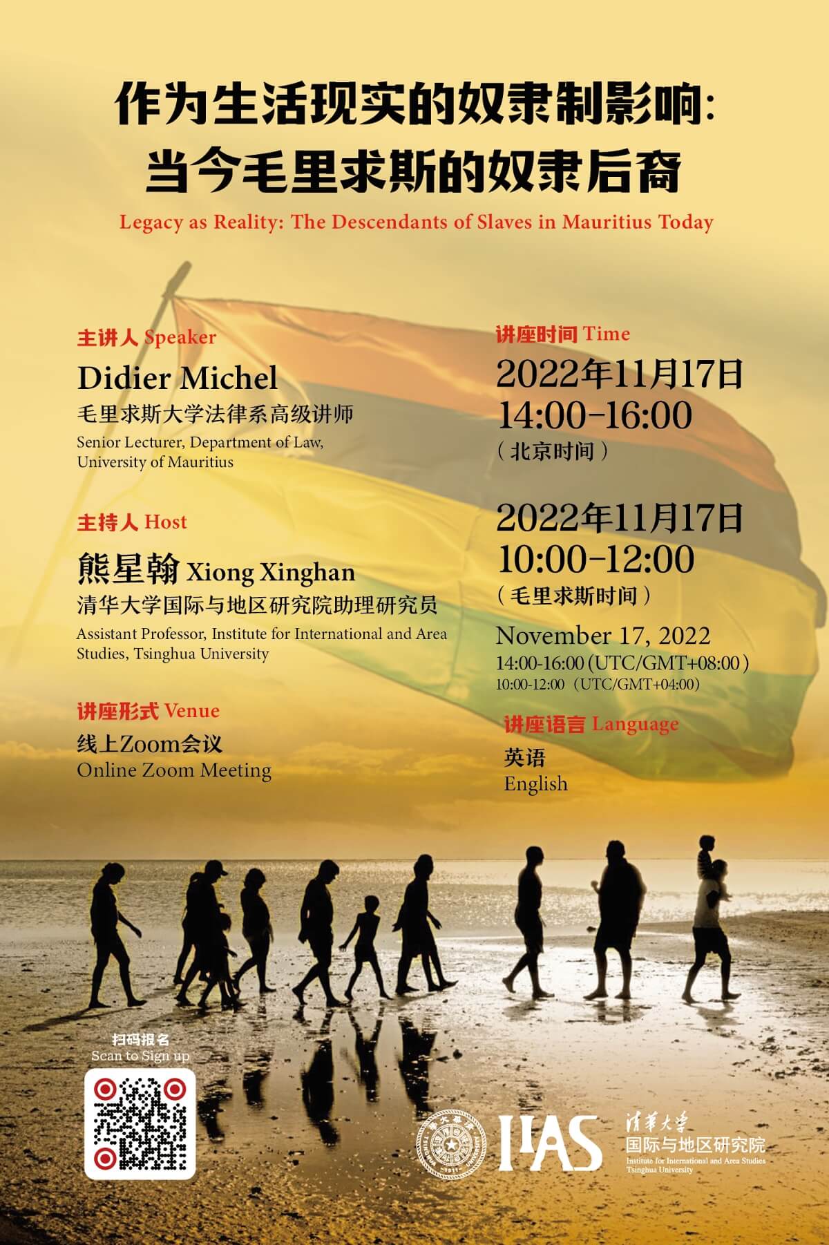 (以下简称“地区研究院”)撒哈拉以南非洲地区研究组2022-2023学年秋季学期第四讲在Zoom平台召开,主题为“作为生活现实的奴隶制影响:当今毛里求斯的奴隶后裔”(Legacy as Reality: The Descendants of Slaves in Mauritius Today)。本次讲座由毛里求斯大学法律系系主任迪迪埃·米歇尔(Didier Michel)主讲,草榴社区