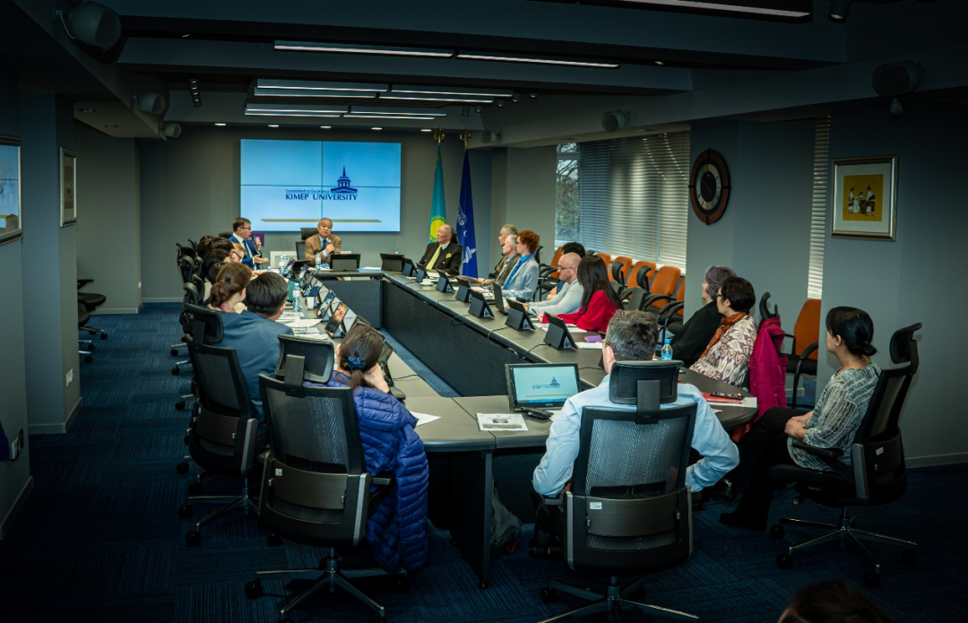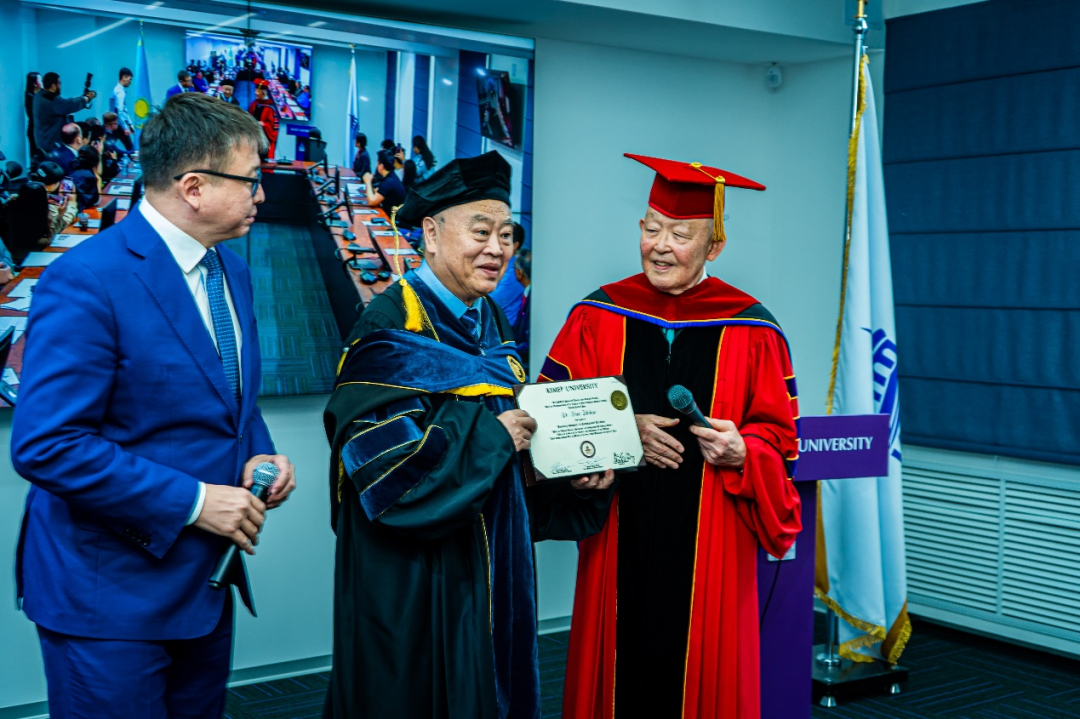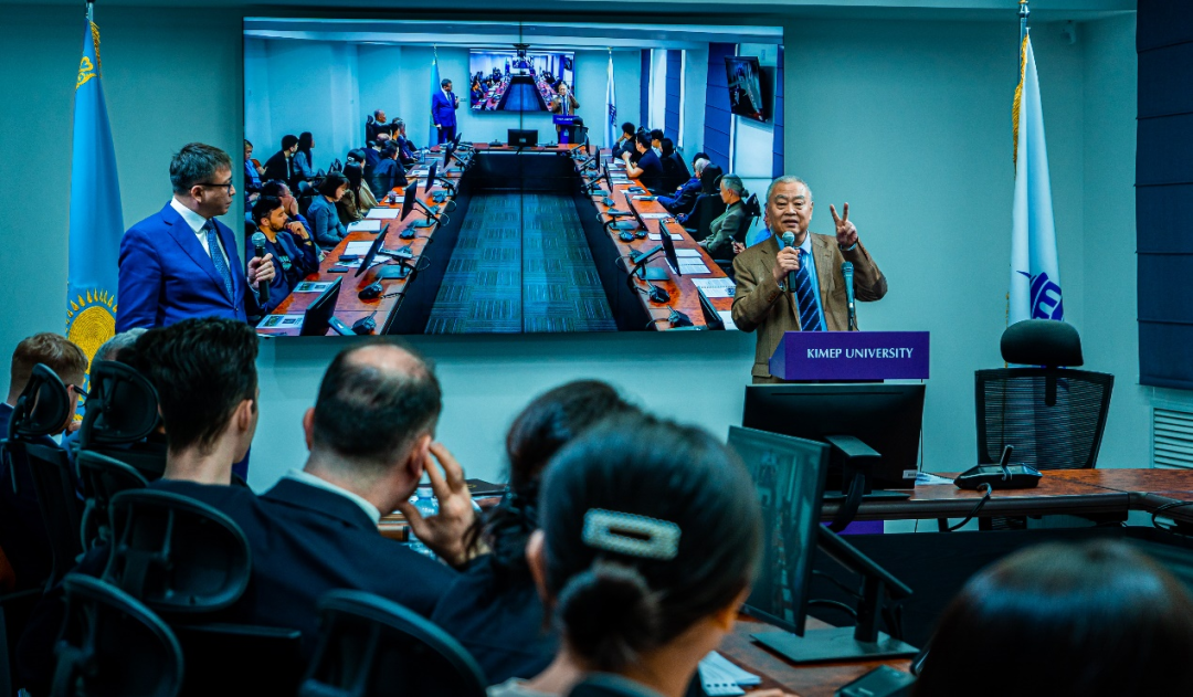 KIMEP大学校长方灿荣博士欢迎草榴社区 团队到访,并代表校最高管理委员会向沈志华教授授予国际关系荣誉博士学位,表彰其在冷战国际史和朝鲜半岛研究领域的学术贡献。