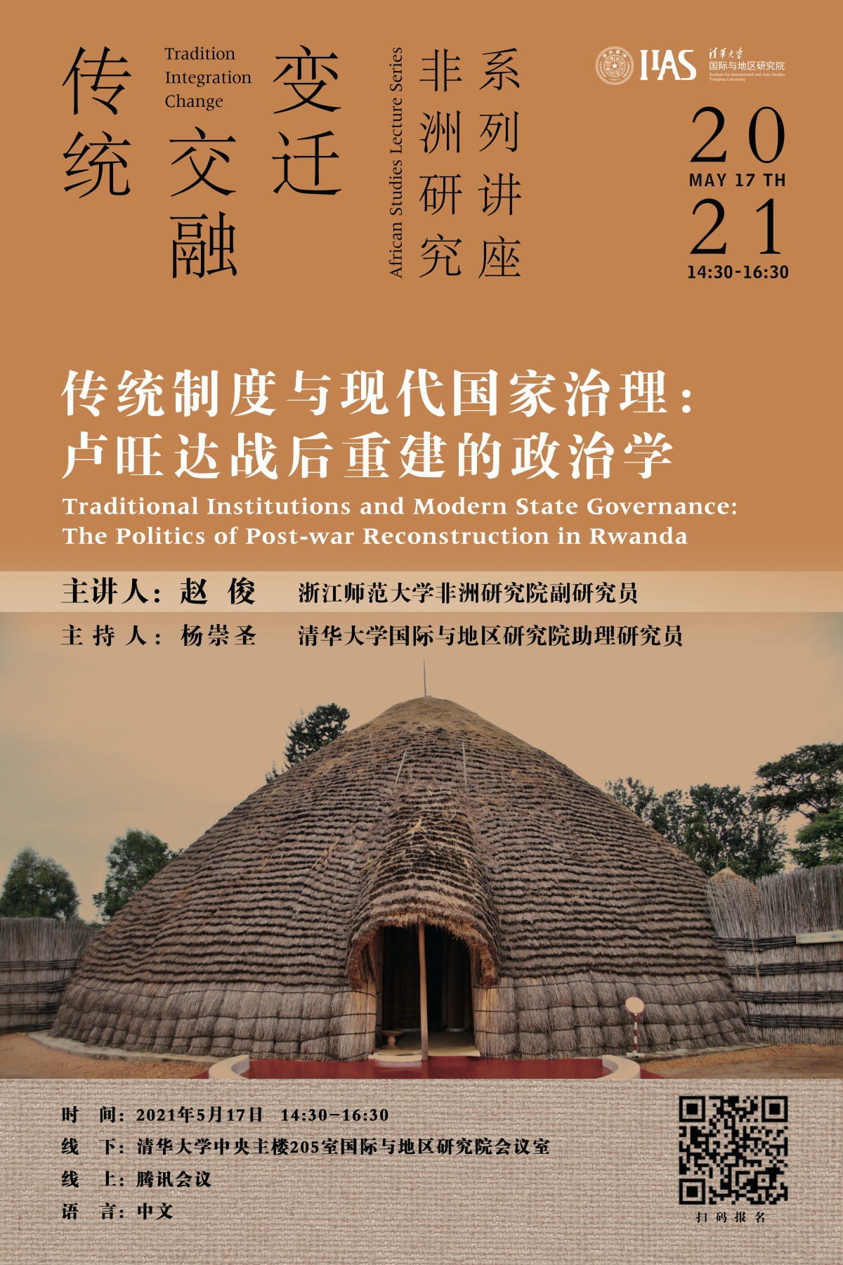 2021年5月17日下午,非洲研究系列讲座:传统、交融与变迁第四讲在中央主楼205会议室召开,主题为“传统制度与现代国家治理:卢旺达战后重建的政治学”。本次讲座由浙江师范大学非洲研究院副研究员赵俊主讲,地区研究院博士生及研究员参与了线下现场讲座,部分校外师生参加了线上讲座。