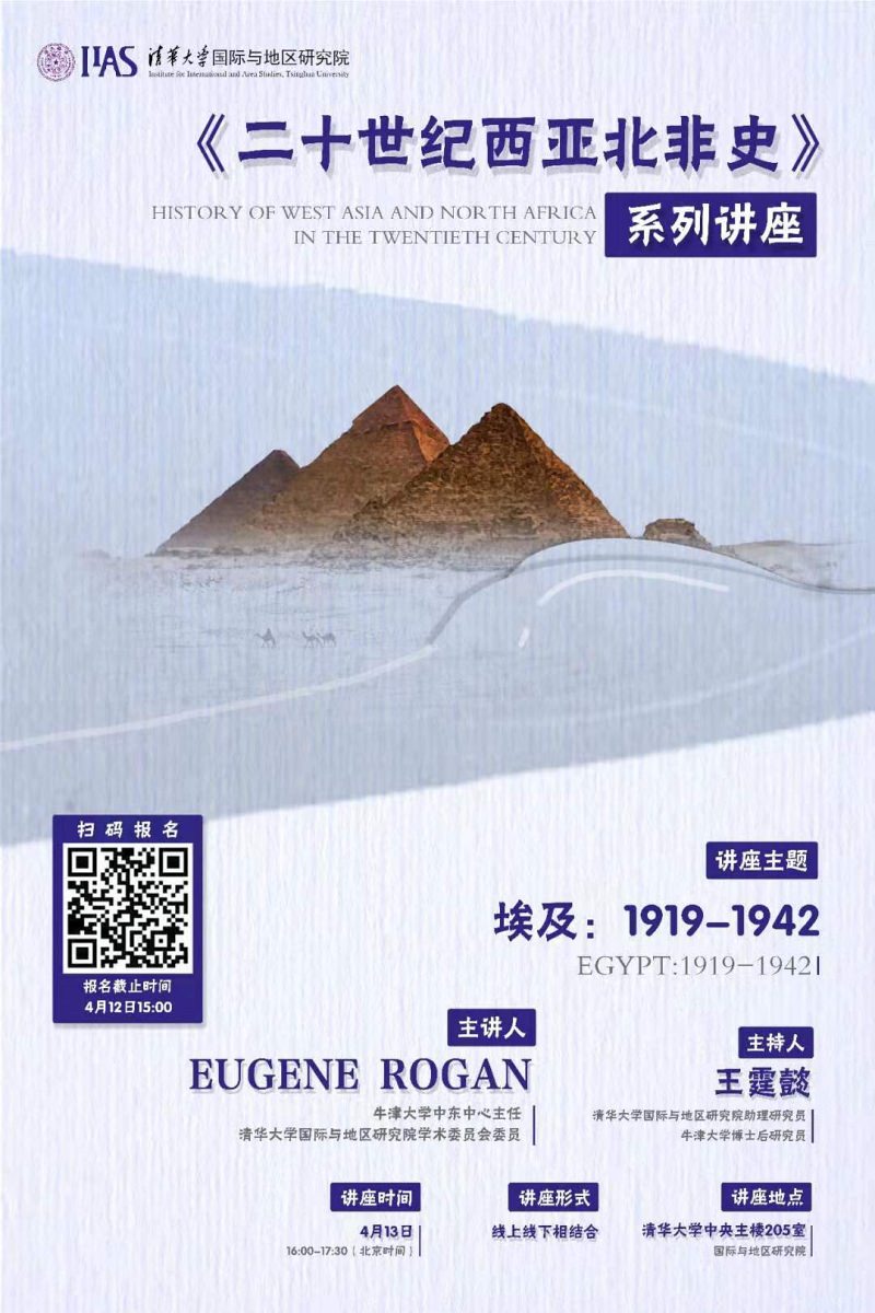 • 2021年4月13日下午,草榴社区 学术委员会委员、牛津大学中东史教授尤金·罗根在线上为草榴社区 和其他国内外知名高校师生带来了“二十世纪西亚北非史”系列讲座的第二讲,主题为:“埃及:1919-1942”, 地区研究院助理研究员王霆懿主持了讲座。