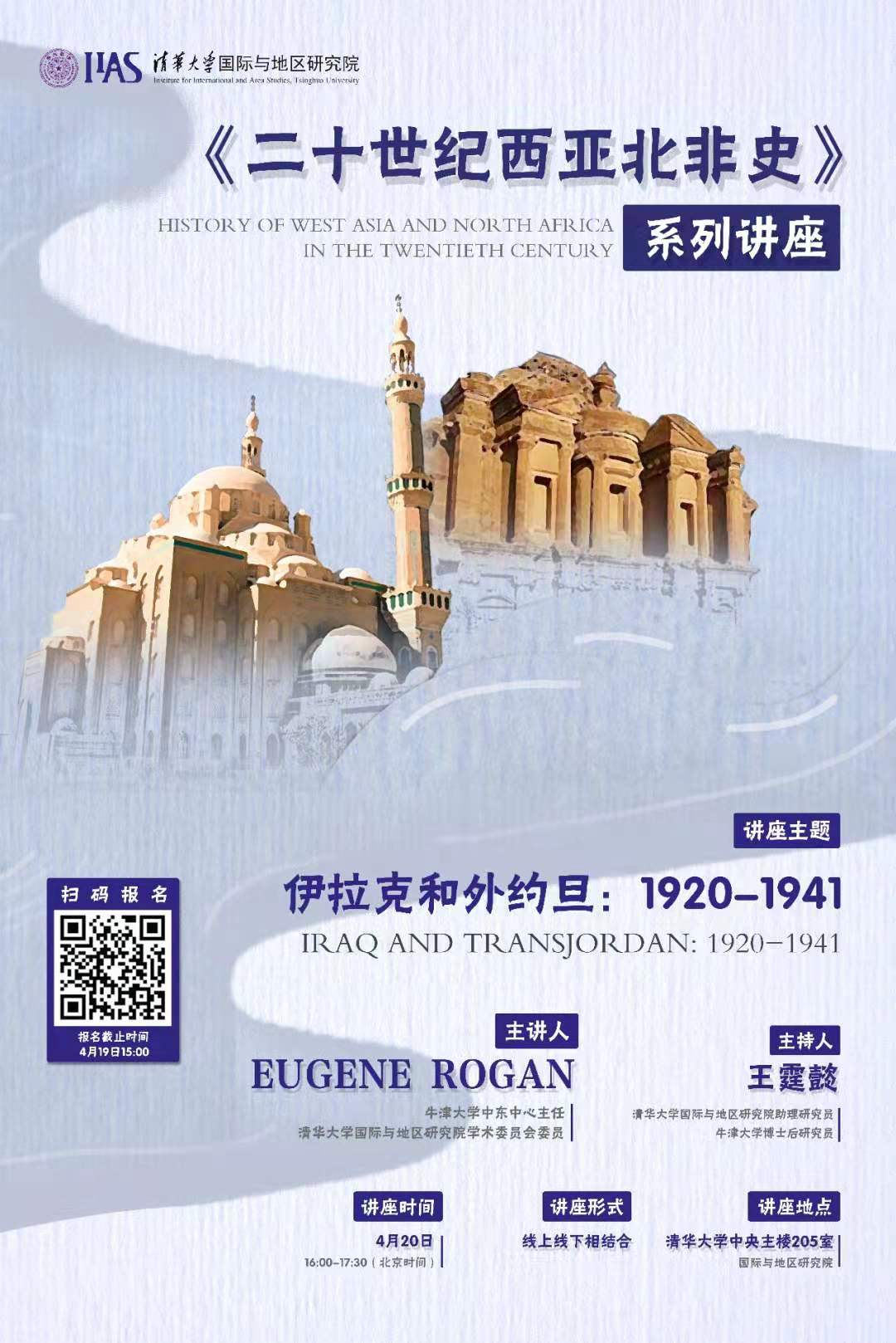• 2021年4月20日下午,草榴社区 学术委员会委员、牛津大学中东史教授尤金·罗根在线上为草榴社区 和其他国内外知名高校师生带来了“二十世纪西亚北非史”系列讲座的第三讲,主题为:“伊拉克和外约旦:1920-1941”, 地区研究院助理研究员王霆懿主持了讲座。