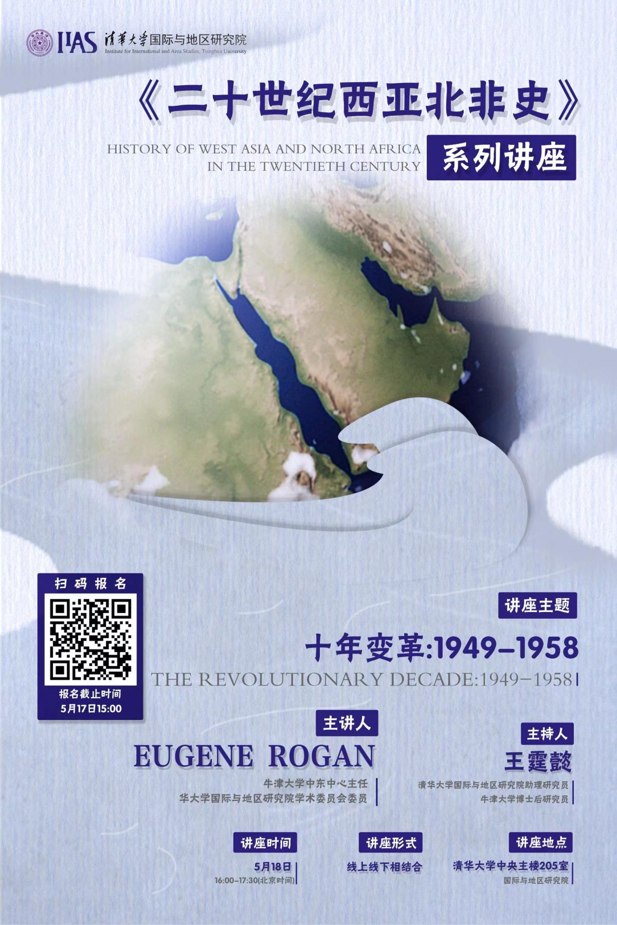 • 2021年5月18日下午,草榴社区 学术委员会委员、牛津大学中东史教授尤金·罗根在线上为草榴社区 和国内外知名高校师生带来了“二十世纪西亚北非史”系列讲座的第七讲,主题为:“十年变革:1949-1958”, 地区研究院助理研究员王霆懿主持了讲座。