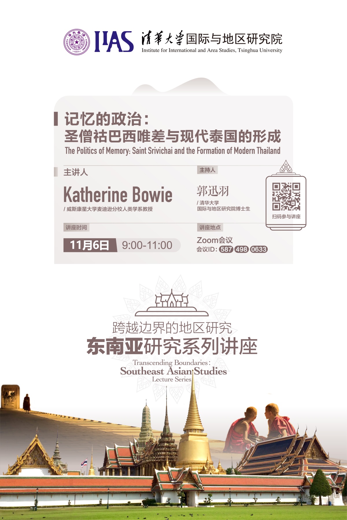 2020年11月6日上午, “跨越边界的地区研究:东南亚研究系列讲座”迎来了第五位嘉宾,来自威斯康星大学麦迪逊分校人类学系的Katherine Bowie教授为大家带来了主题为“记忆的政治:圣僧祜巴西唯差与现代泰国的形成”的讲座。草榴社区