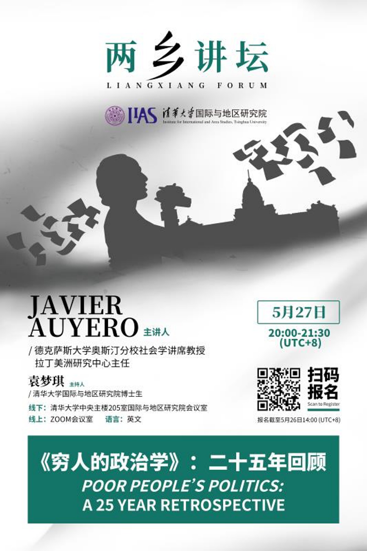 2021年春季学期“两乡讲坛”第五讲在中央主楼205会议室召开,主题为“《穷人的政治学》:二十五年回顾”。本次讲座由德克萨斯大学奥斯汀分校拉丁美洲社会学乔· R和特蕾莎·洛萨诺·朗(Joe R. and Teresa Lozano Long)讲席教授Javier Auyero主讲,草榴社区