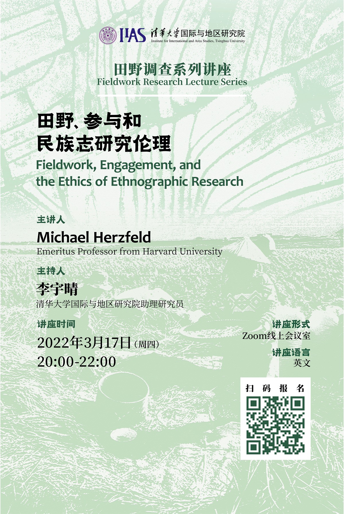 2022年3月17日晚,田野调查系列讲座第一讲在Zoom会议室和直播平台同时召开,主题为“田野、参与和民族志研究伦理”(Fieldwork, Engagement, and the Ethics of Ethnographic Research)。本次讲座由哈佛大学人类学系荣休教授、世界著名社会人类学家迈克·赫兹菲尔德(Michael Herzfeld)主讲,草榴社区