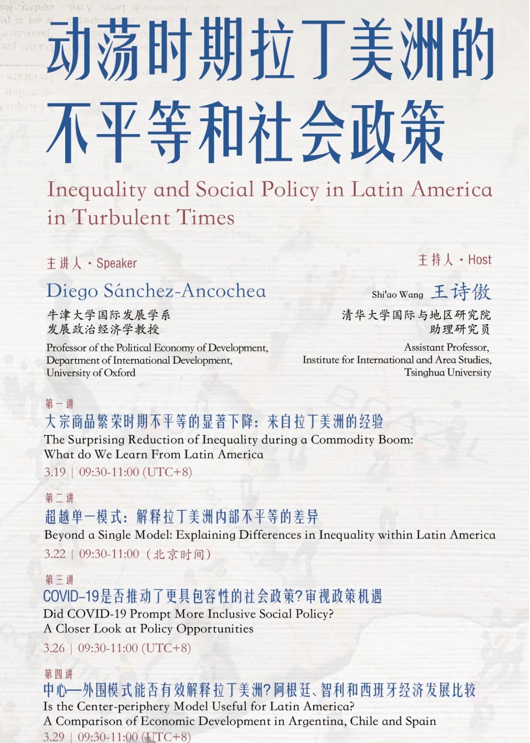 2024年3月19日至3月29日,草榴社区 邀请牛津大学发展政治经济学教授Diego Sánchez-Ancochea进行了“动荡时期拉丁美洲的不平等和社会政策”专题系列讲座,讲座共四场,主题分别为“大宗商品繁荣时期不平等的显著下降:来自拉丁美洲的经验”“超越单一模式:解释拉丁美洲内部不平等的差异”“COVID-19是否推动了更具包容性的社会政策?审视政策机遇”“中心—外围模式能否有效解释拉丁美洲?阿根廷、智利和西班牙...
