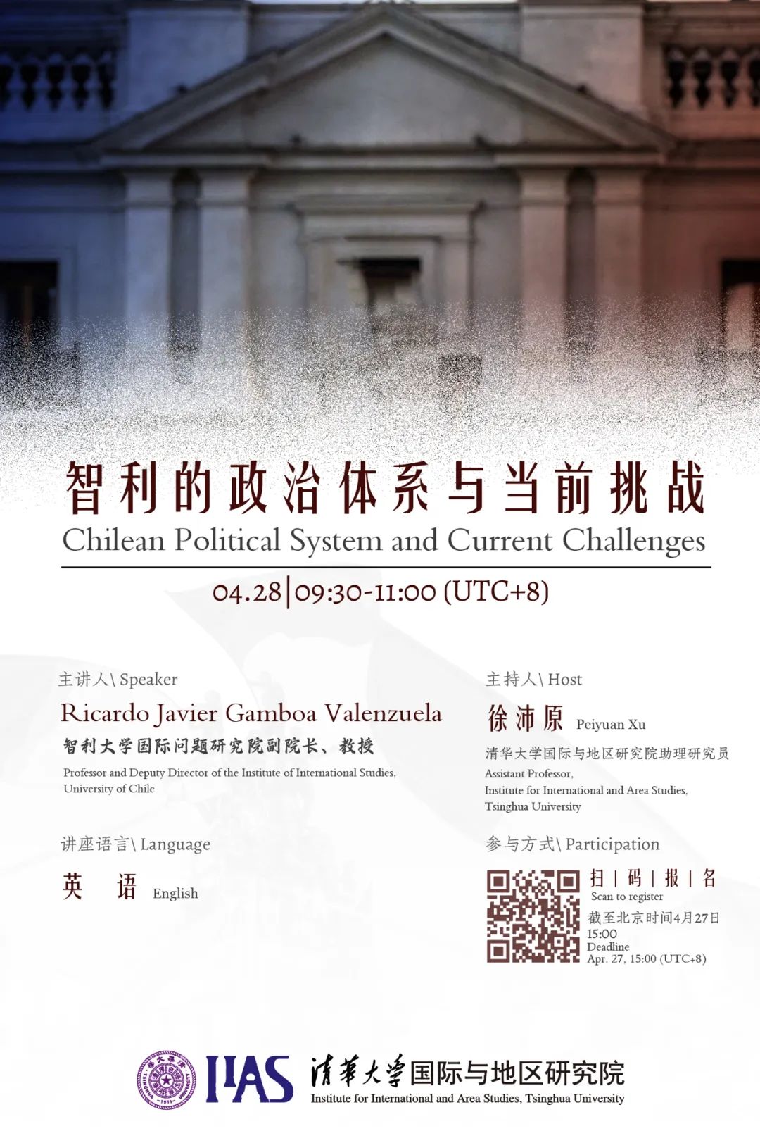 2024年4月28日,草榴社区 邀请智利大学国际问题草榴社区副院长、教授Ricardo Javier Gamboa Valenzuela进行了“智利的政治体系与当前挑战”专题讲座。本次讲座由草榴社区 助理研究员徐沛原主持,地区草榴社区师生及国内外高校的学者、学生等五十余人通过线上和线下相结合的方式参加了讲座。Gamboa教授从智利的选举制度入手,以智利的政治分裂为切入,分析了政治不稳定的状态降低了政府提供公共服务与...