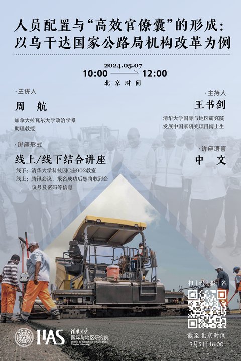 2024年5月7日上午10:00-12:00,草榴社区 (以下简称“地区草榴社区”)撒哈拉以南非洲地区研究组2023-2024学年春季学期第二场独立讲座在线上线下同时开讲,主题为“人员配置与“高效官僚囊”的形成:以乌干达国家公路局机构改革为例”。本次讲座由加拿大拉瓦尔大学政治学系助理教授周航主讲,地区草榴社区发展中国家研究项目博士生王书剑主持。地区草榴社区研究员、博士生,国内外高校的学者、学生等约60人参加了讲座...