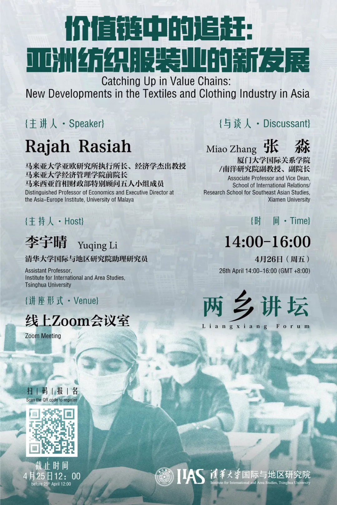 2024年4月26日下午,草榴社区 “两乡讲坛”第二十六讲线上开讲,主题为“价值链中的追赶:亚洲纺织服装业的新发展”(Catching Up in Value Chains: New Developments in the Textiles and Clothing Industry in Asia)。本场讲座由马来亚大学亚欧研究所执行所长、经济学杰出教授,经济管理学院前院长,马来西亚首相财政部特别顾问五人小组成员Rajah Rasiah主讲,厦门大学国际关系学院/南洋草榴社区副院长张淼与谈...