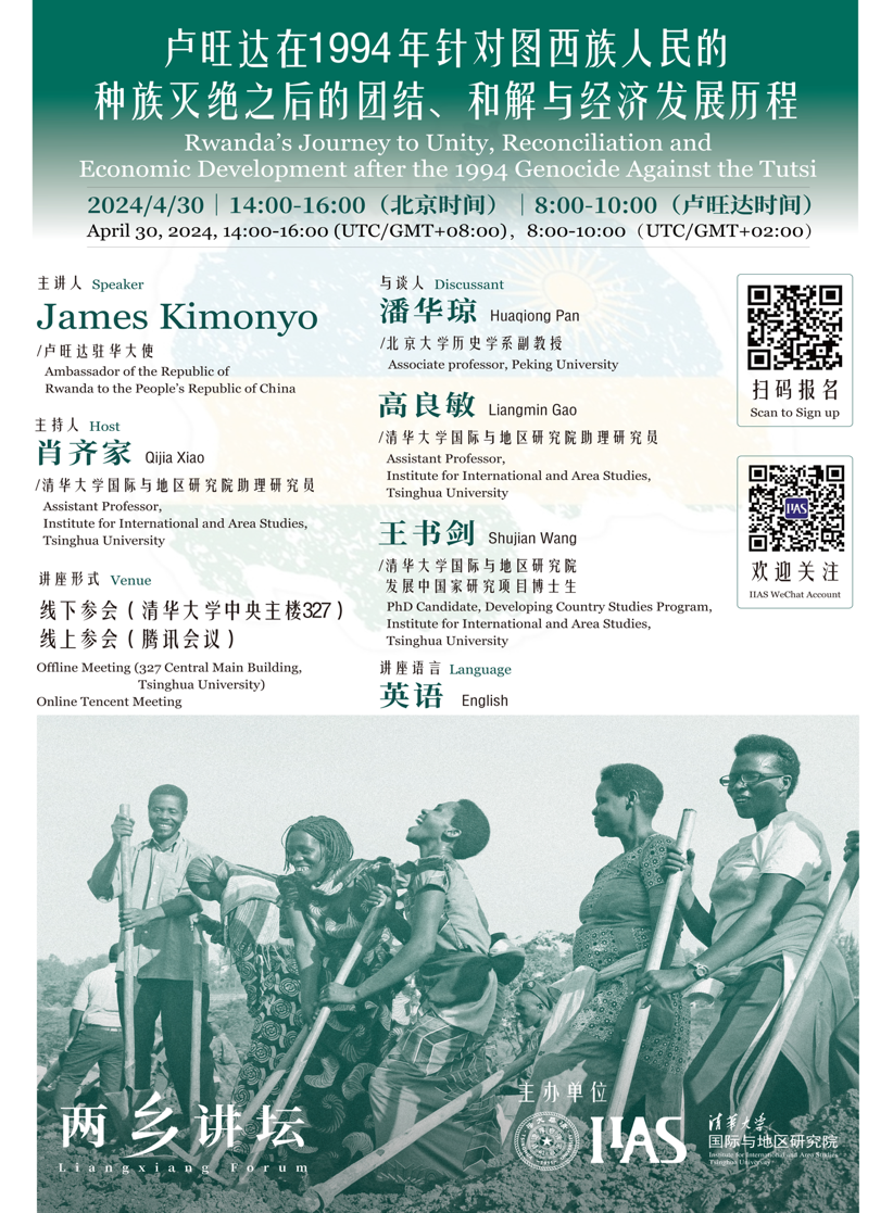 2024年4月30日下午,草榴社区 “两乡讲坛”第二十五讲在中央主楼327召开,主题为“卢旺达在1994年针对图西族的种族灭绝之后的团结、和解与经济发展历程”。本次讲座由卢旺达驻华大使詹姆斯·基莫尼奥(James Kimonyo)阁下主讲,北京大学历史学系副教授潘华琼、草榴社区 助理研究员高良敏以及草榴社区 发展中国家研究项目博士生王书剑与谈,草榴社区 助理研究员肖...