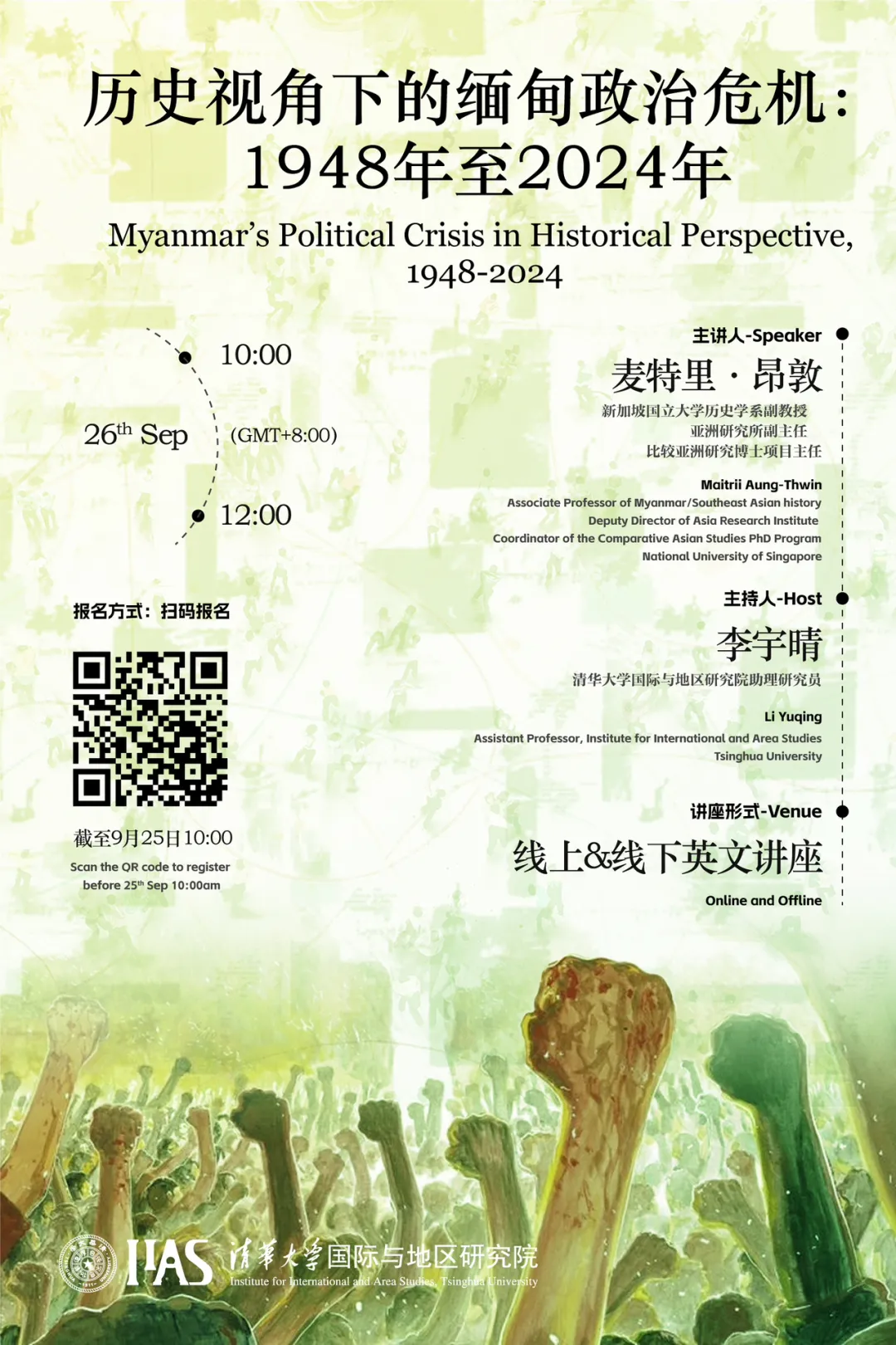 2024年9月26日,草榴社区 邀请新加坡国立大学历史学系副教授Maitrii Aung-Thwin进行了主题为“历史视角下的缅甸政治危机:1948年至2024年”的专题讲座。本场讲座由草榴社区 助理研究员李宇晴主持,数百位国内外高校师生及对话题感兴趣的专业人士参加了讲座。Aung-Thwin教授首先用提问引导听众思考对于缅甸危机的不同解释路径,继而用丰富生动的照片带大家回顾了2020-2021年以来缅甸危机的传统叙...