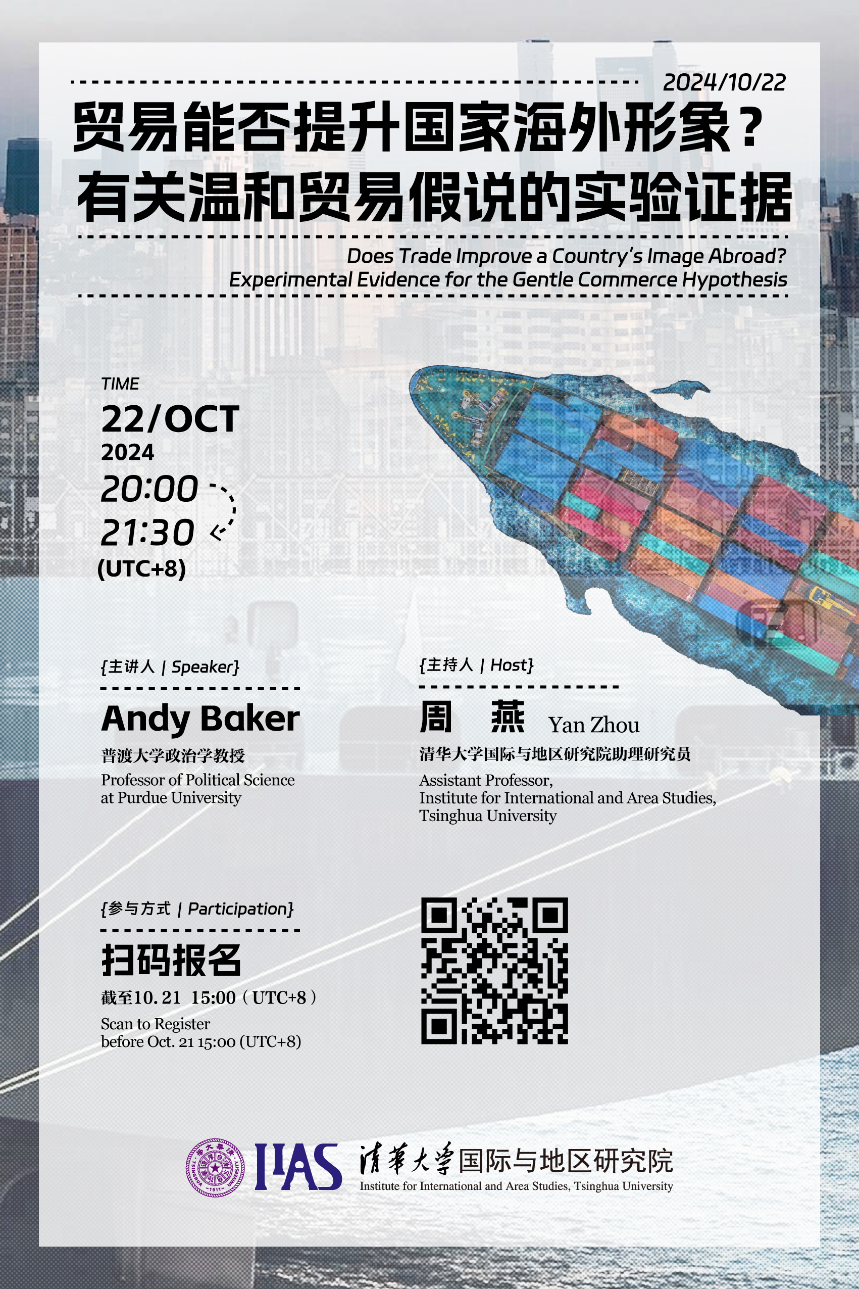 2024年10月22日,草榴社区 (以下简称“地区草榴社区”)邀请普渡大学政治学教授Andy Baker进行了“贸易能否提升国家海外形象?有关温和贸易假说的实验证据”专题系列讲座。本次讲座由地区草榴社区助理研究员周燕主持,地区草榴社区师生及国内外高校的学者、学生等60余人参加了讲座。在讲座中,Baker教授首先从商业与国家形象的之间关联性切入,简要梳理了温和贸易中国家之间互相影响的渠道,以及包括直觉重商主义、创...