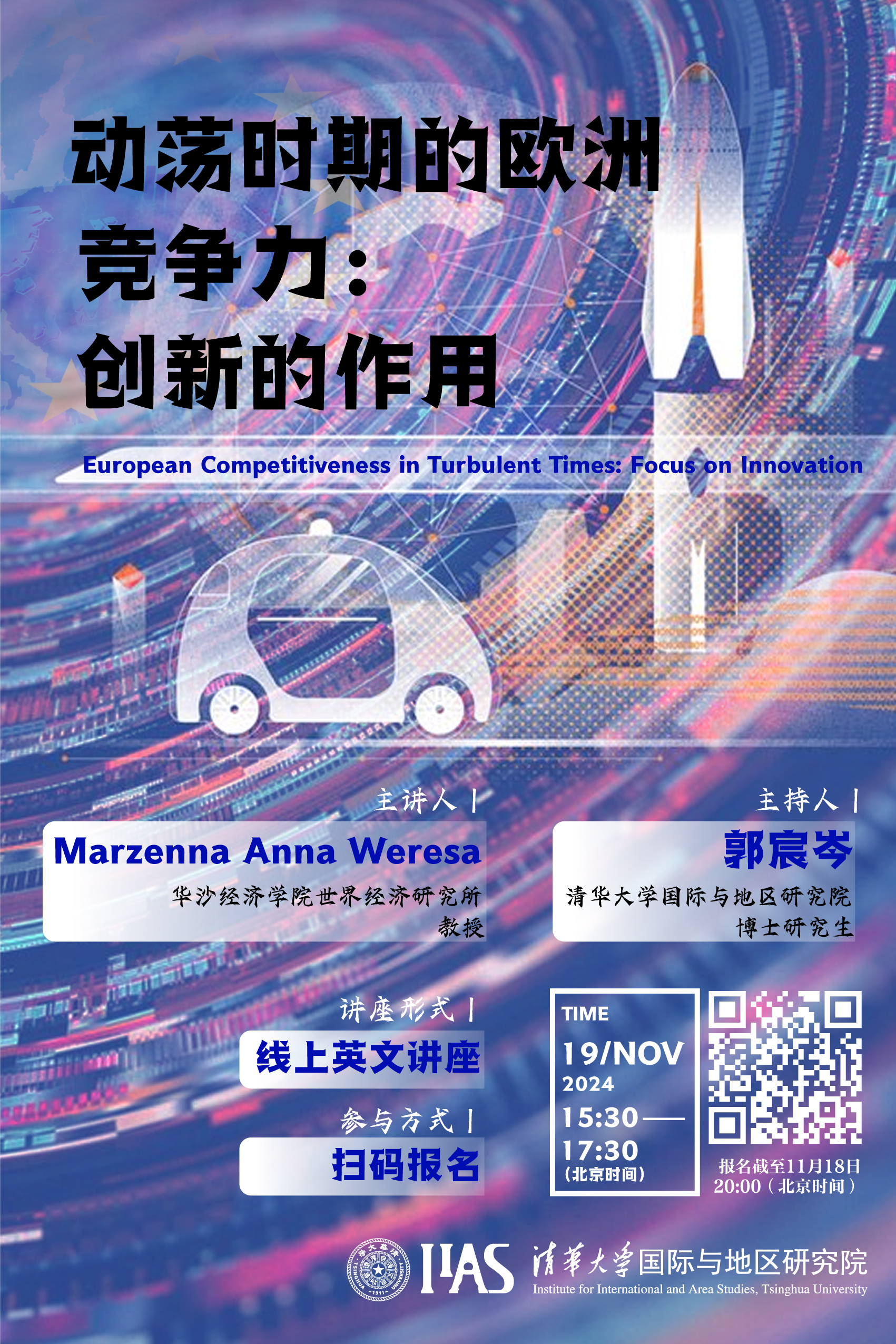 2024年11月19日下午,草榴社区 举办的独立讲座“动荡时期的欧洲竞争力:创新的作用”在线上开讲。主讲人为华沙经济学院世界经济研究所教授Marzenna Anna Weresa。讲座吸引了草榴社区 的博士生,以及来自北京大学、中国社会科学院大学和中央民族大学等高校的师生参与。在简要进行文献回顾后,主讲人依次从1943-2022年竞争力量化研究,作为一种多面现象的全球竞争力,传统与现代方法下的竞争力维度...