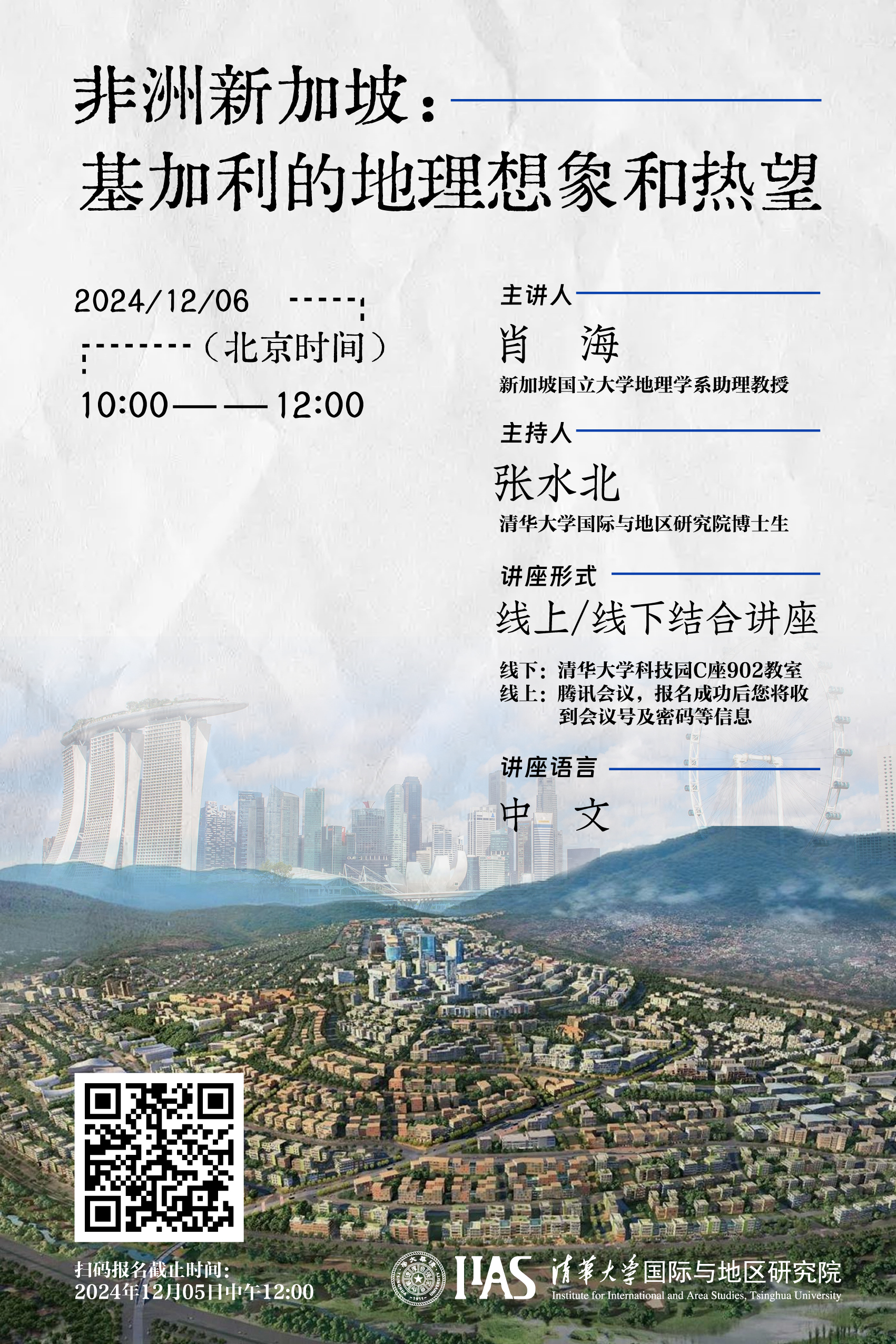 2024年12月6日10:00-12:00,草榴社区 (以下简称“地区草榴社区”)撒哈拉以南非洲研究中心2024-2025学年秋季学期第三场独立讲座在线上线下同时开讲,主题为“非洲新加坡:基加利的地理想象和热望”。本次讲座由新加坡国立大学地理学系助理教授肖海主讲,地区研究博士研究生张水北主持。地区草榴社区研究员、博士生,国内外高校的学者、学生等约50人参加了讲座。回顾整场讲座,肖海老师首先介绍了新加坡和卢旺达的面...