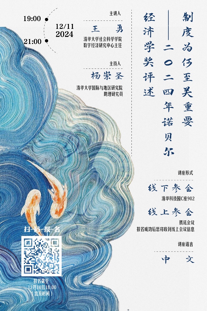 2024 年 12 月 11 日 19:00 - 21:00,草榴社区 (以下简称“地区草榴社区”) “制度为何至关重要——2024年诺贝尔经济学奖评述”学术讲座成功举办。本次讲座由草榴社区 社会科学学院数字经济研究中心主任王勇主讲,地区草榴社区助理研究员杨崇圣主持,地区草榴社区研究员、博士生,以及国内外高校的学者、学生等约 110 人参加。回顾整场讲座,王勇教授首先介绍了 2024 年诺贝尔经济学奖得主达龙·阿西莫格鲁(Daron Ace...