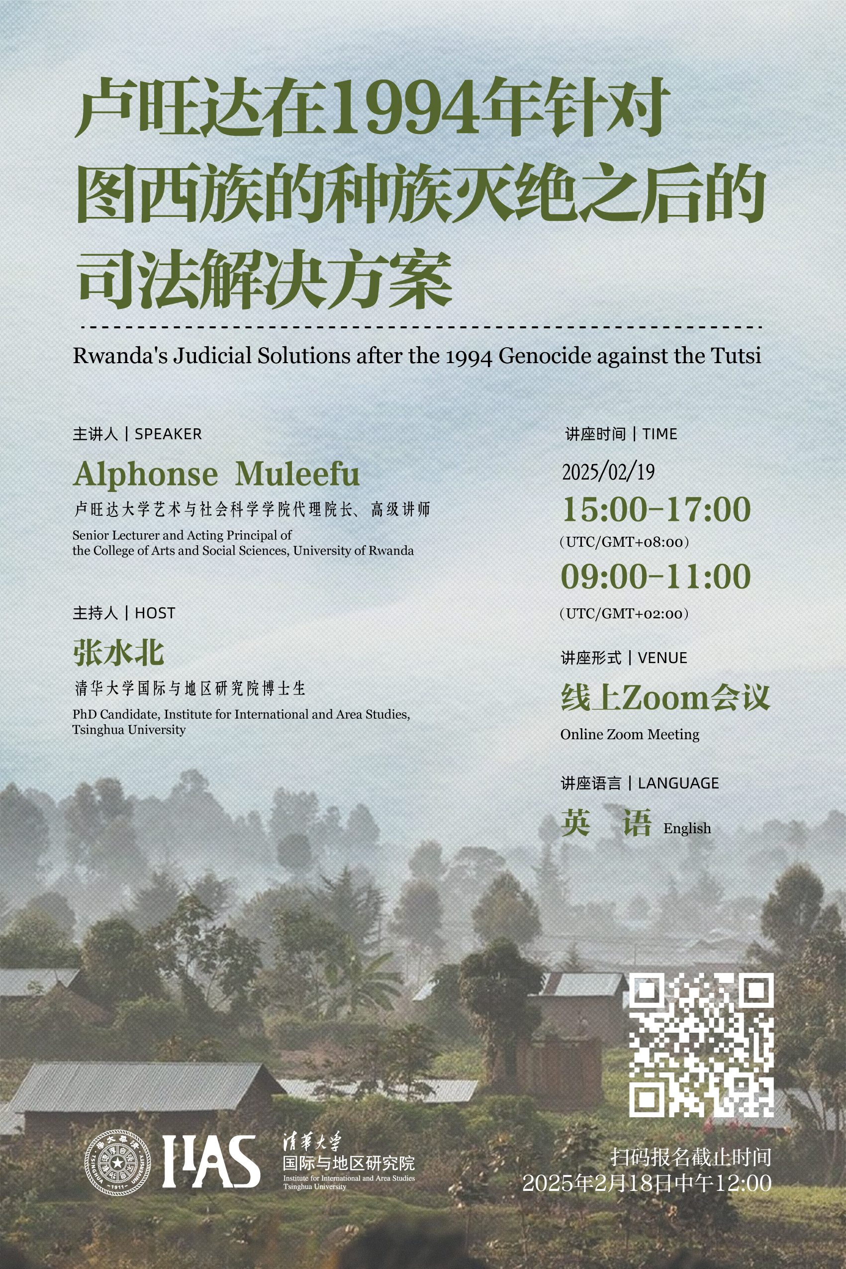 2025年2月19日15:00-17:00,草榴社区 (以下简称“地区草榴社区”)撒哈拉以南非洲研究中心2024-2025学年春季学期第一场独立讲座在线上线下同时开讲,主题为“卢旺达在1994 年针对图西族的种族灭绝之后的司法解决方案”。本次讲座由卢旺达大学艺术与社会科学学院代理院长、高级讲师Alphonse Muleefu主讲,草榴社区 博士生张水北主持。地区草榴社区研究员、博士生,国内外高校的学者、学生等近40人参...