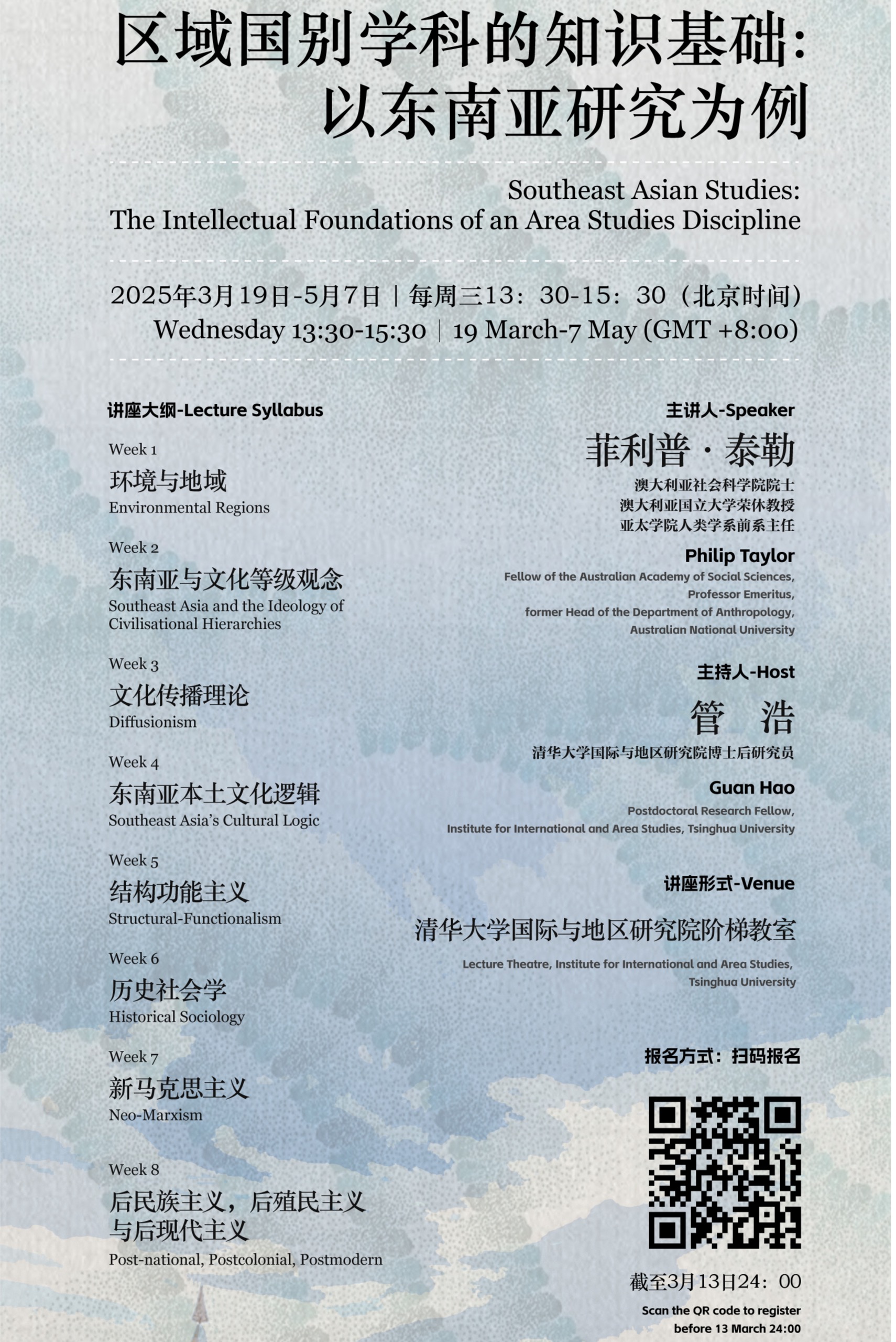 2025年3月19日下午,草榴社区 邀请澳大利亚社会科学院院士、澳大利亚国立大学荣休教授、亚太学院人类学系前系主任菲利普·泰勒(Philip Taylor)教授进行了“区域国别学科的知识基础:以东南亚研究为例”专题系列讲座的第一讲,主题为“环境与地域”。本场讲座由草榴社区 博士后研究员管浩主持,百余名国内外高校师生及对该话题感兴趣的专业人士通过线下和线上等方式参加了讲座。讲座伊始,菲利普...