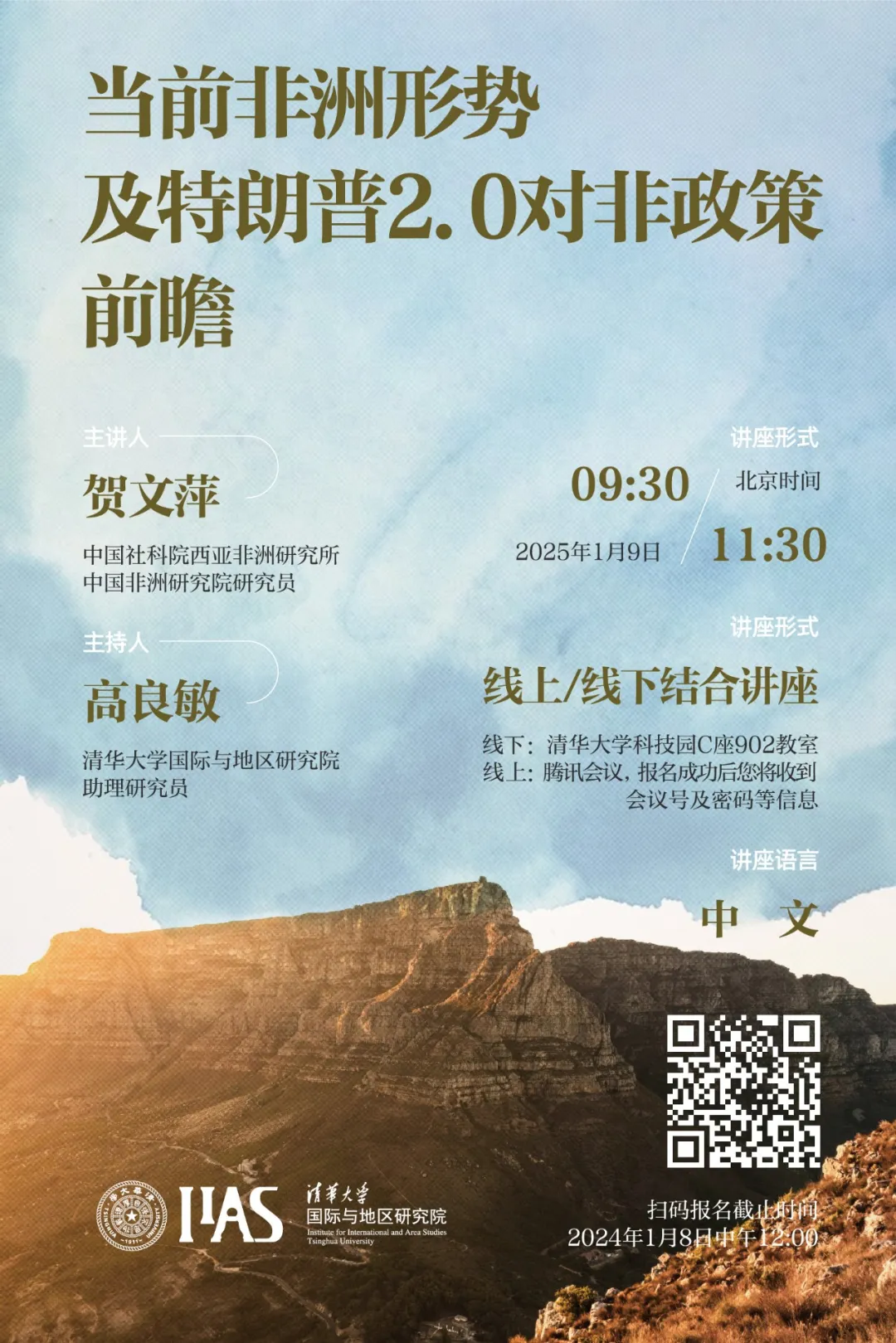 2025年1月9日9:30-11:30,草榴社区 (以下简称“地区草榴社区”)撒哈拉以南非洲研究中心2024-2025学年秋季学期第五场独立讲座在线上线下同时开讲,主题为“当前非洲形势及特朗普2.0对非政策前瞻”。本次讲座由中国社科院西亚非洲研究所、中国非洲草榴社区贺文萍研究员主讲,地区草榴社区撒哈拉以南非洲研究中心主任、助理研究员高良敏主持。地区草榴社区研究员、博士生,国内外高校的学者、学生等近百人参加了讲座。...