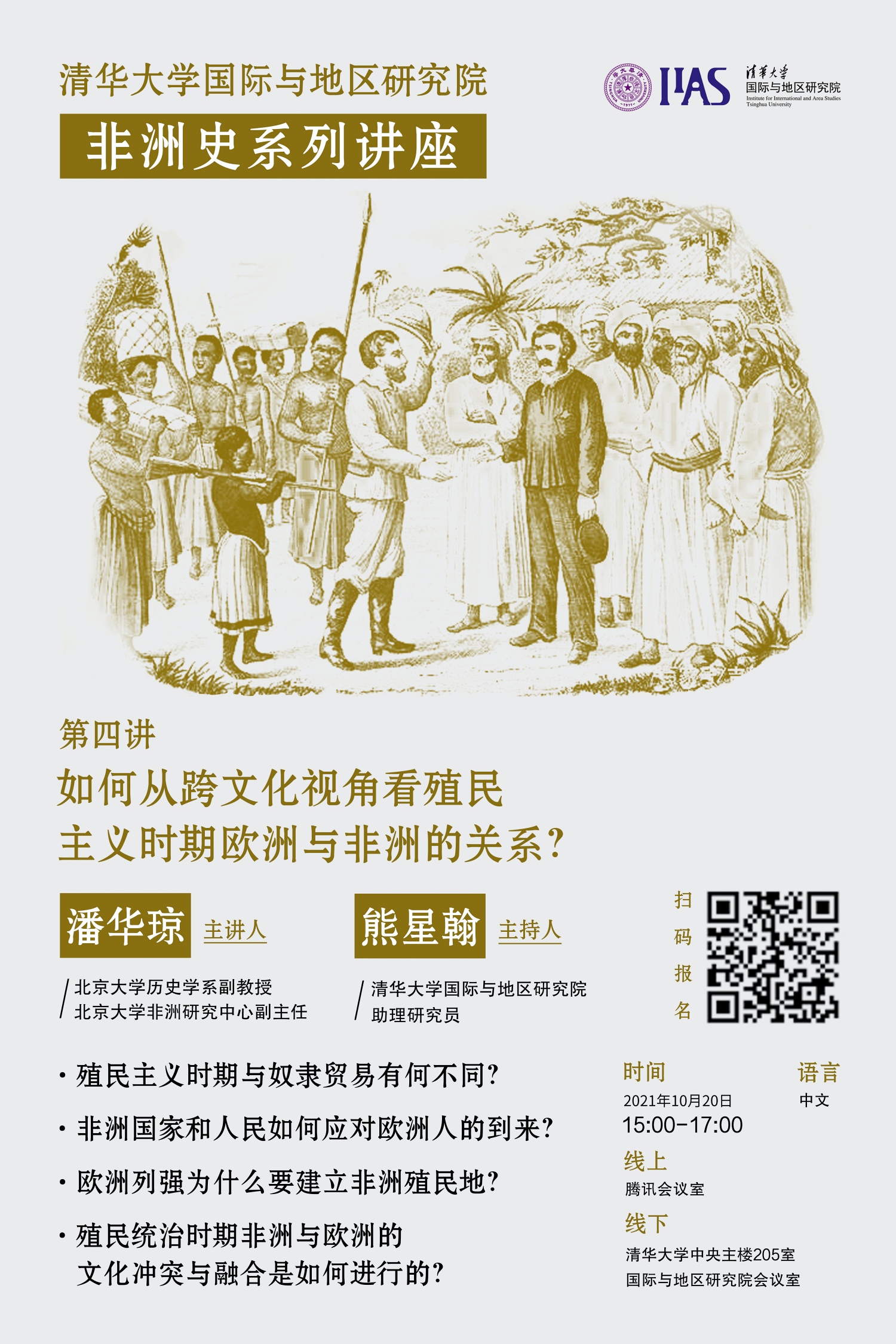 2021年10月20日下午,草榴社区 (IIAS)非洲史系列讲座第四讲在中央主楼205会议室召开,主题为“如何从跨文化视角看殖民主义时期欧洲与非洲的关系”。本次讲座由北京大学历史学系副教授、北京大学非洲研究中心副主任潘华琼老师主讲。
